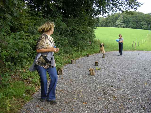 sie bekommt dort ihre Futterbelohnung und kehrt mit dem Figuranten zu uns zurück