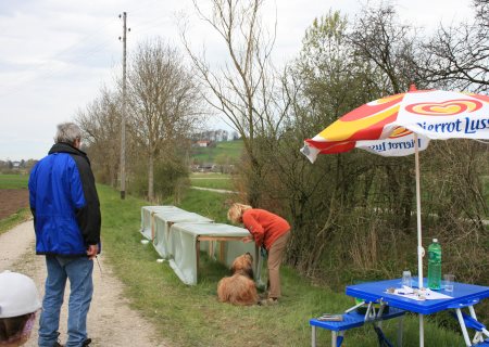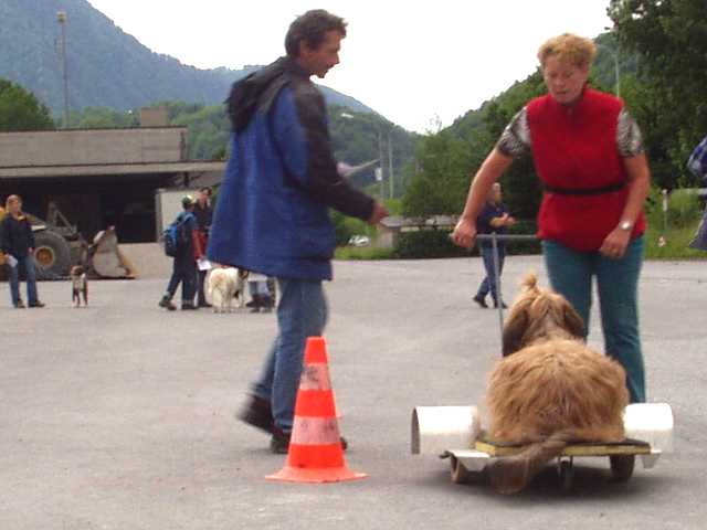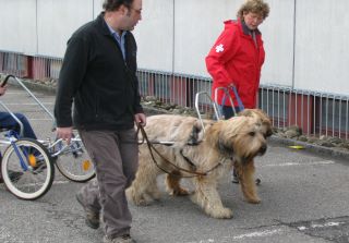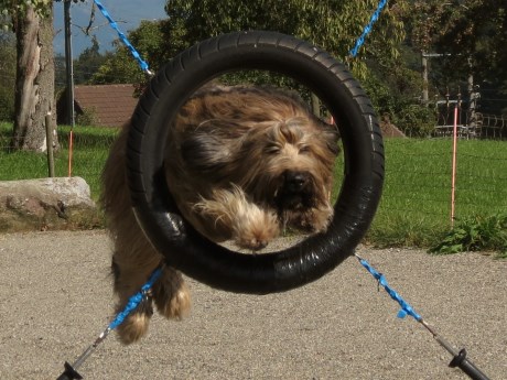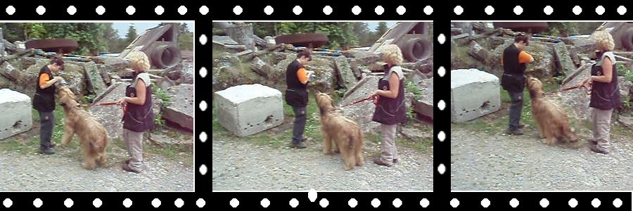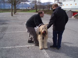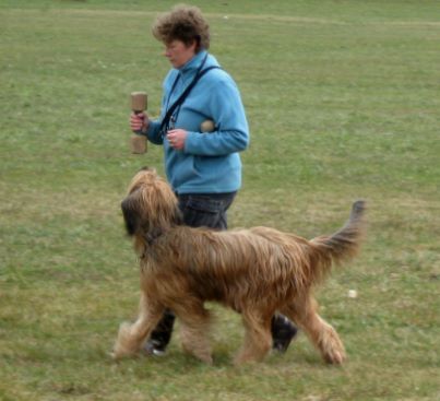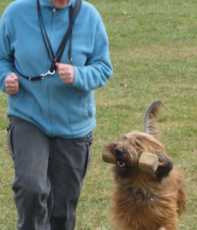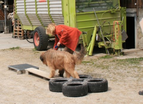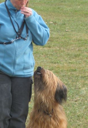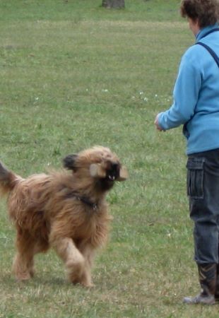 Der erste Versuch mit der jungen Briardhündin Dezaley klappt hervorragend.
