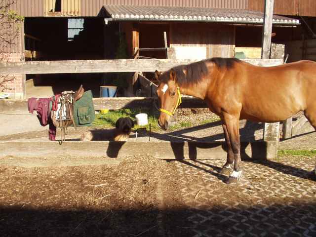 Im Sommer wird Jessy erst mal von der Weide geholt und geputzt