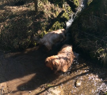 Benga trifft unterwegs auf Ivy, zusammen macht plantschen noch mehr Spass!