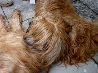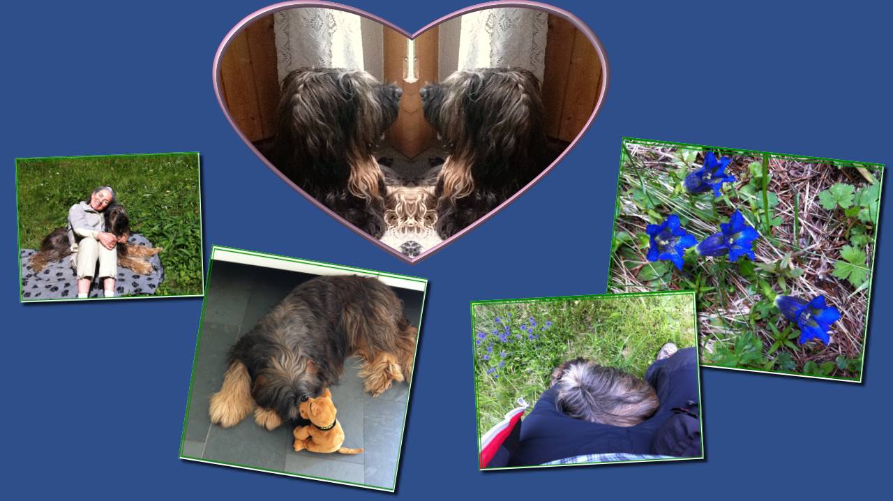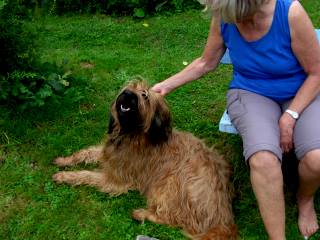 Um so erstaunlicher ist es doch, dass die Briardhündin es auch mit 4 Jahren noch so geniesst und gerne bei Mama kuschelt.