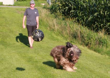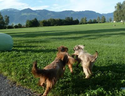 Babouche spielt gerne mit Artgenossen, oft und gerne Briardmässig wild!