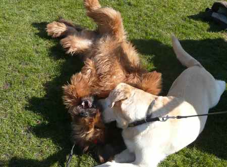 Frauchen lass mich endlich los... ich will dahin ! |