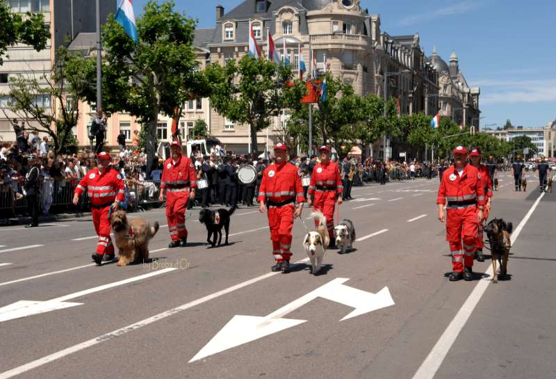 "Deine" Cheyenne hat heute zum Nationalfeiertag in Luxemburg mit der Rettungshundestaffel des LRK am zivilen Teil der Militärparade teilgenommen.