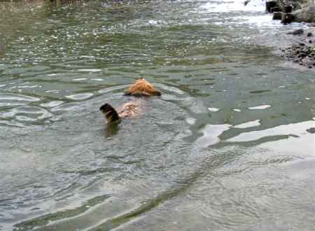 Er hat nun auch seine ersten Schwimmversuche hinter sich