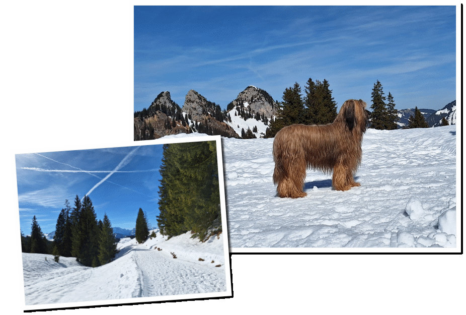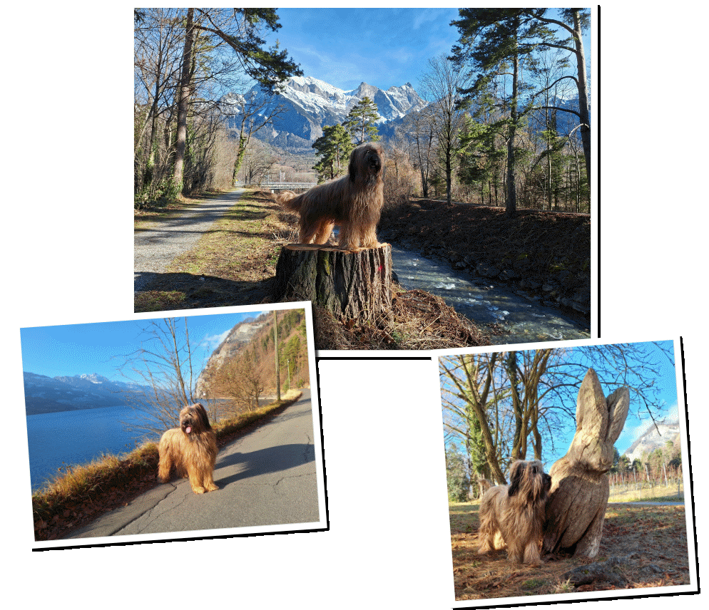 Tagebuch mit Ishonj (Briard) und Jumaya ( Berger des Pyrénées)