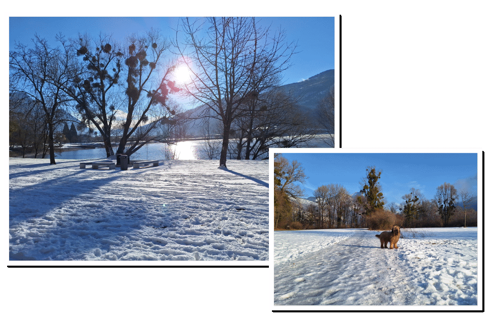 Und dann, war wieder Schnee da. Die beiden lieben es in der Kälte spazieren zu gehen.